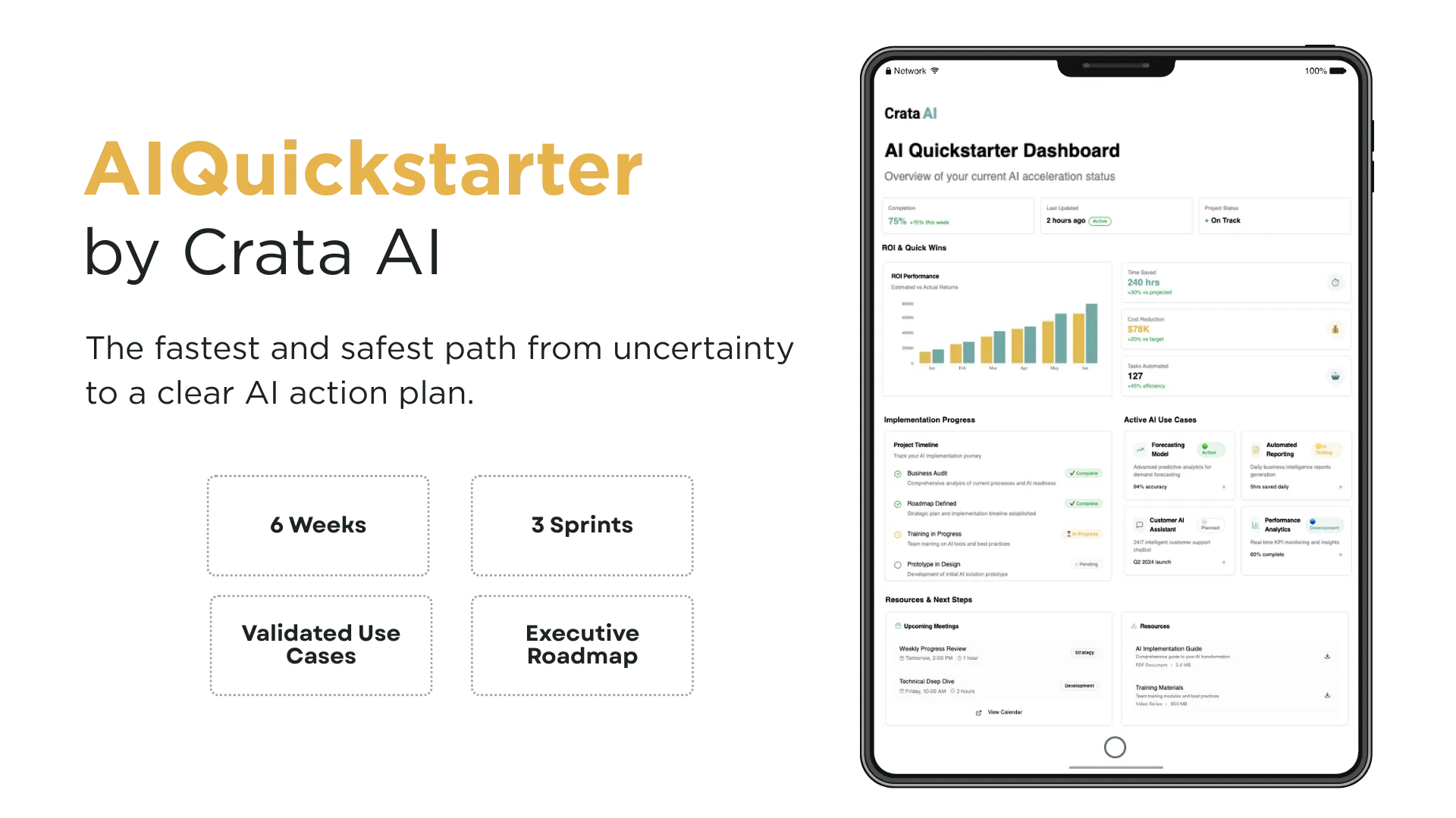 However, not every use case delivers the same return from day one. That’s where AI Quickstarter comes in, a solution designed by Crata AI to help startups identify the highest impact AI initiatives, validate feasibility, and launch them within weeks.